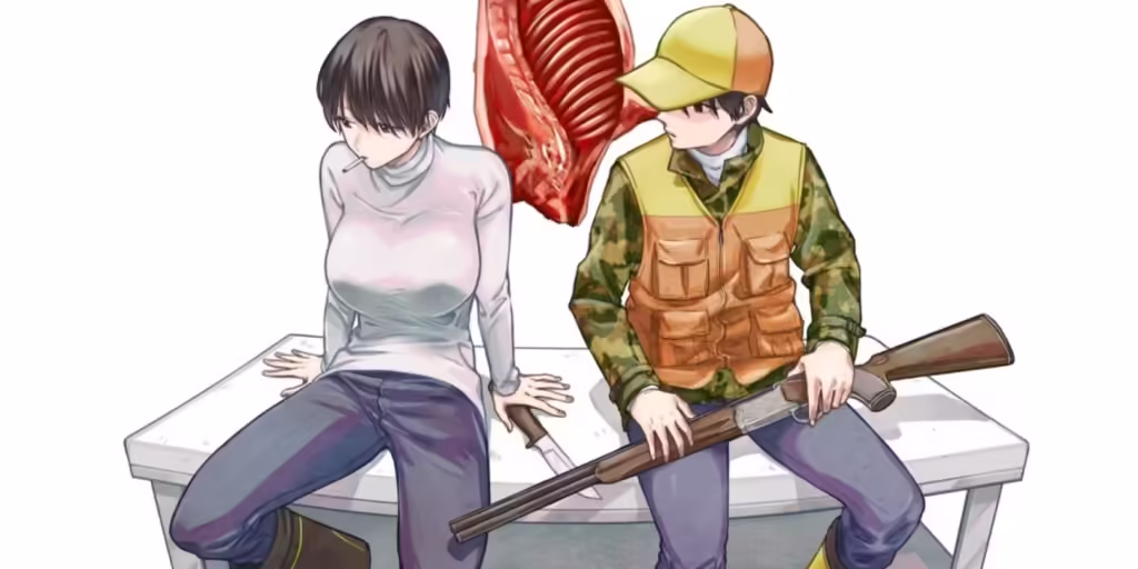Chiaki lies naked on the table where he butchers meat. His father approaches the table silently. With gentle hands and a sharp knife, Chiaki’s father cuts away his breasts and takes out his uterus. With all signs of his feminity stripped away, Chiaki smiles and tells his father they can finally hunt together.