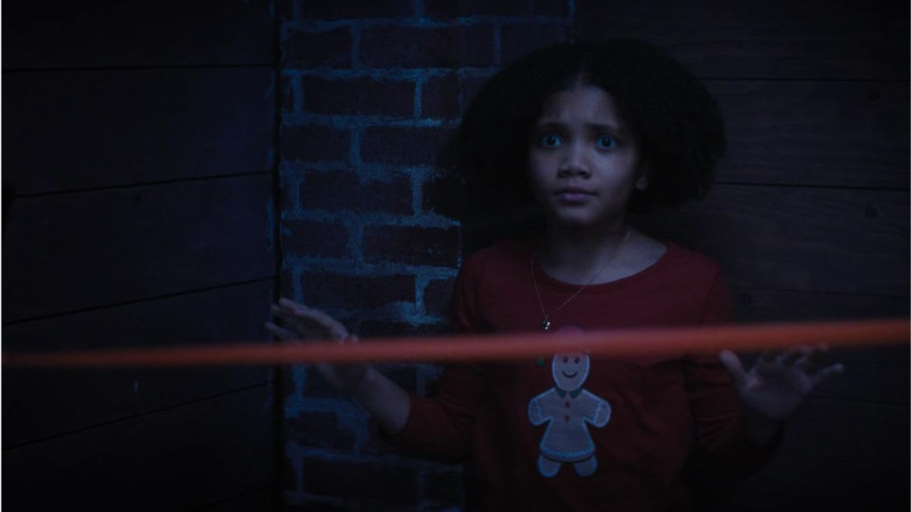 Don’t get me wrong. I love Black Christmas (1974), Krampus (2015), and The Lodge as much as the next broken millennial. However, like most movies in this subgenre, we’re rarely seen unless it’s for a trope. We can be sidekicks or day players, but we cannot be involved in the central conflict. We cannot lead, but we can serve. Part of my deal as an intersectional horror lady is asking and looking for movies that do better. So, imagine my surprise when Tommy Wirkola’s Violent Night and Jenn Wexler’s The Sacrifice Game not only remembered Black people exist, but specifically thought Black girls deserve some Christmas magic too.