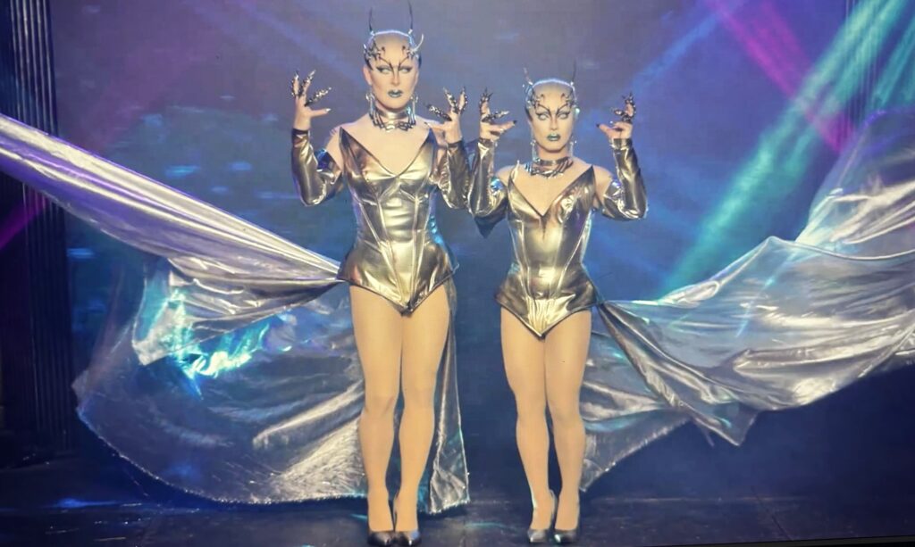 Our deep space deities, the Boulet Brothers, enter the main stage serving dainty galactic bug. I’d never thought I’d use that word to describe them, but watching them flutter their capes and traipse around the stage in delicate movements is the biggest gag of the episode. I guess evil does have a cutesy side! The duo then introduce guest judges, actor David Dastmalchian – who gives Crispin Glover a run for his oddball money – and their favorite martian, drag superstar Alaska Thunderfuck 5000. A vintage intro that looks like a cross between the video game series Mass Effect and the V/H/S films plays, and the floor show begins.